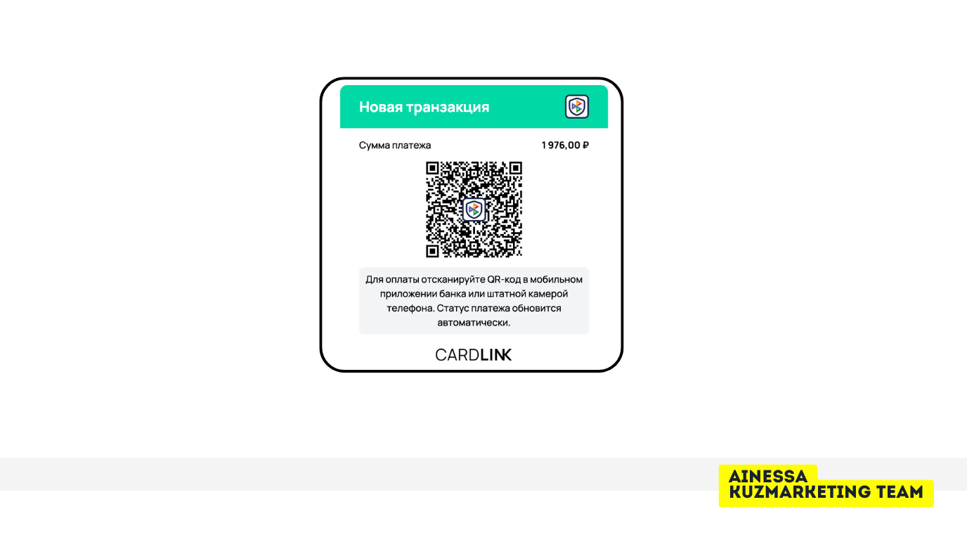 Сканируем QR в приложении банка и оплачиваем (в примере — 1 976 ₽). Статус подтянется автоматически.