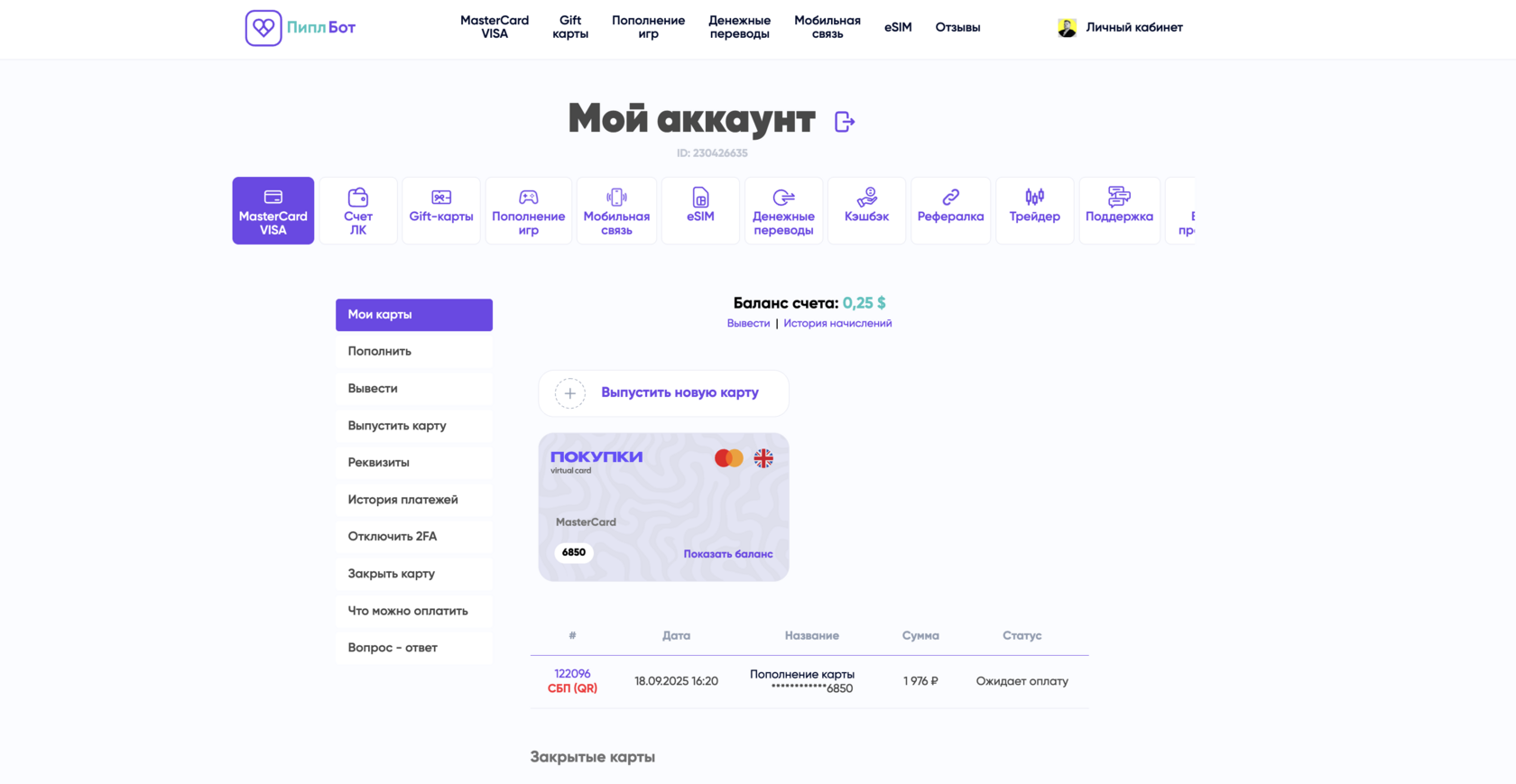 8) Готово — баланс пополнен